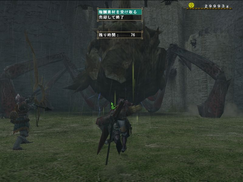 二度目は梟さん血笛で登場、回復薬を飲む回数が激減してたぶん討伐時間も短縮。なのにテオが足を引きずってから1死しちゃって(あほー)BCに居る時に「メインターゲットを・・・」剥ぎ取りに必死で突っ走った。(こういの多すぎだよ私)何とか間に合ったと思ったらなんと同時にゴマちゃんが回線落ち、かわいそす。