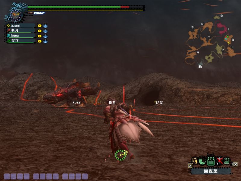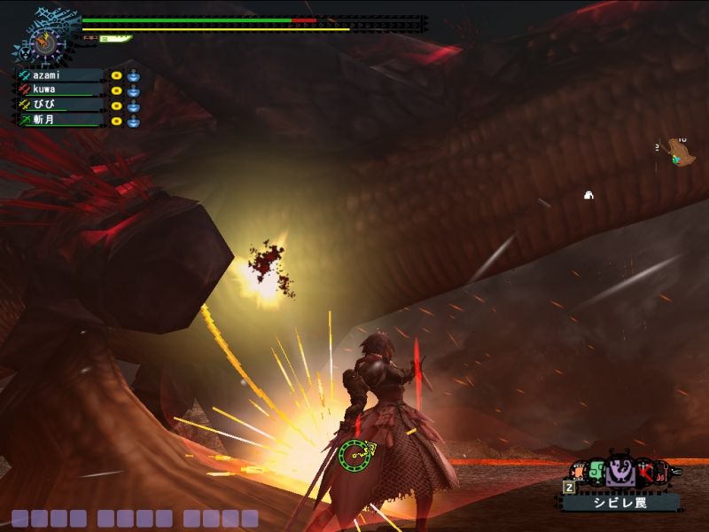 新しい装備に素材が必要なので、みんなにつきあってもらって火山にショウグンギザミ討伐に。