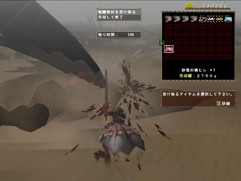 武器にお金がかかるのもそうだけど、回復薬の歩留まりっていうか燃費が悪いからお金がかかるんだよね、クエのたびにマンドラゴラとかハチミツとか秘薬とかいにしえの秘薬とか回復Gとかの消費が激しい。このごろはさらに強走Gだったり。
