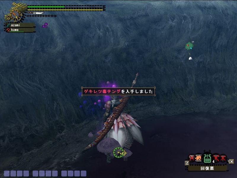 MHP2でソロのときは散々くらったサマーソルトは見ることなくわりとあっさり討伐。解毒薬いっぱい持っていったのに。