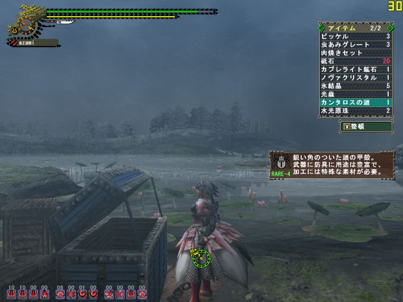 あちこち掘り返し、草むらをあさり、肉を焼き、虫を採って、釣りをして、走り回っていたら画面の隅にメール飛来。なかなかレウスに出くわさないのでほおっておいたら『飛虎』の梟さんだった。