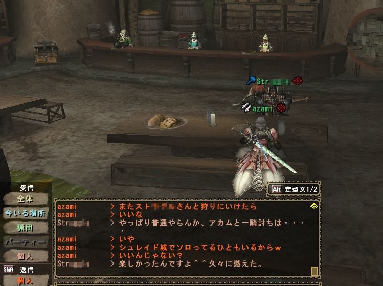 まだ団ができる前、猟団チャットが使えなくて求人区の一部屋を占領して遊んでいたころ知り合った人。